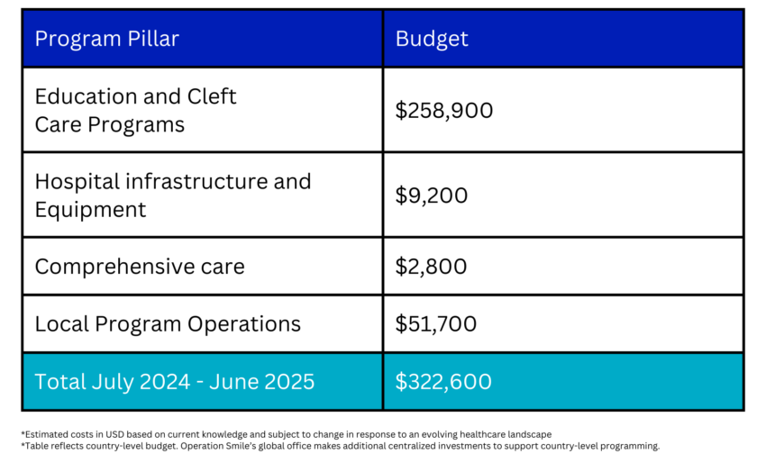 During Fiscal Year July 2024-June 2025, Operation Smile Canada will invest $294,497 accounting for 48% of Mexico’s budget, which will directly contribute to providing top-quality surgical care for over 720 patients and train 475 health workers.