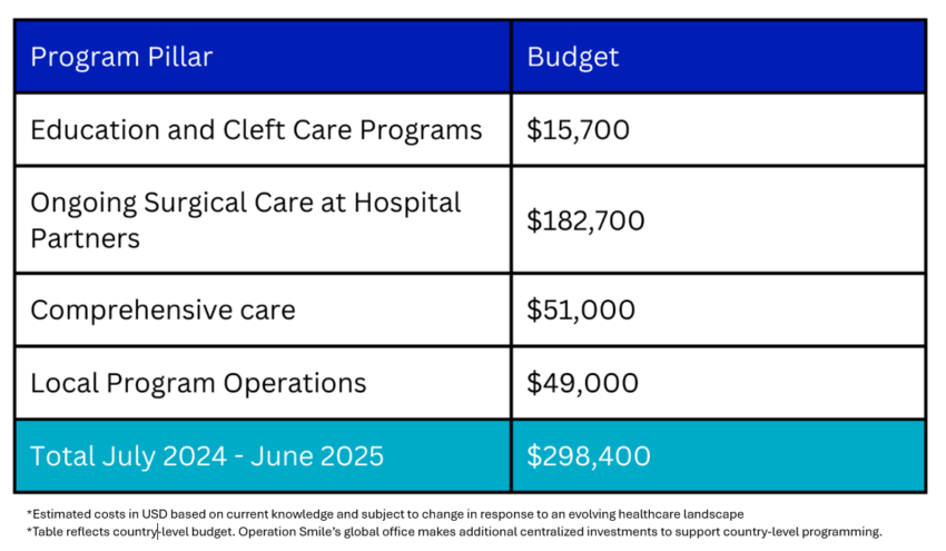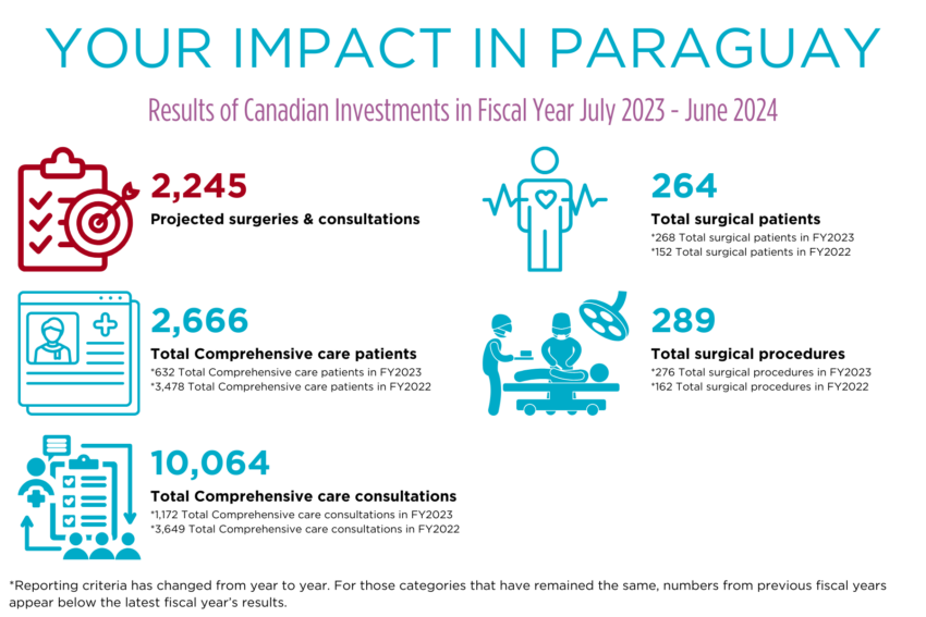 During Fiscal Year July 2024-June 2025, Operation Smile Canada has committed to invest $499,972 CAD, accounting for 62% of Paraguay’s total projected budget for the fiscal year, which will directly contribute to providing high-quality surgery and care for 300 patients and deliver training to 600 health workers.