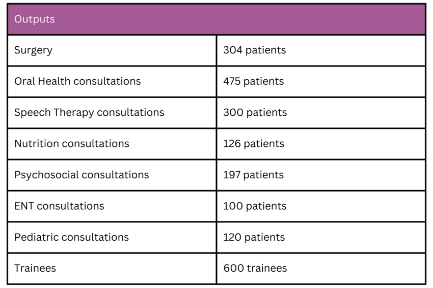 We will ensure that our patients have access to the best possible care by upgrading equipment and furniture and building a third operating room at our Centre. To decrease barriers to cleft care, we will advocate for the creation of national clinical guidelines for comprehensive cleft care.