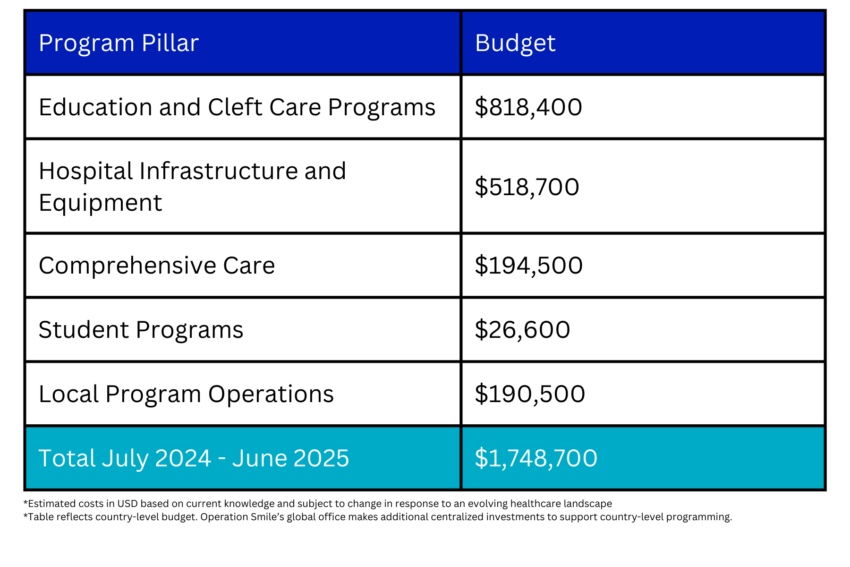 During Fiscal Year July 2024-June 2025, Operation Smile Canada will invest $198,169 CAD, accounting for 5% of South Africa’s total projected budget for the fiscal year, which will directly contribute to delivering life-changing surgical care for over 540 patients and provide training for around 1,100 medical providers.