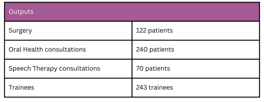 Operation Smile will provide surgical treatment for over 120 individuals, deliver oral health consultations to 240 patients and deliver speech consultations to 70 patients.